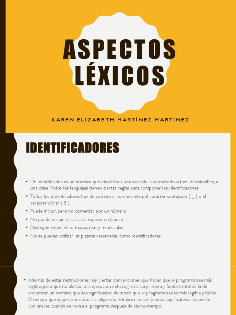 una clase. Todos los lenguajes tienen ciertas reglas para componer los identificadores:
