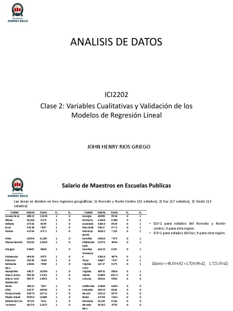 Nebraska 42044 7900 1 0 Virginia 44727 9275 0 1 Salario = 48, 014.62 +1, 524.09 × D2 -1, 721.03× D3