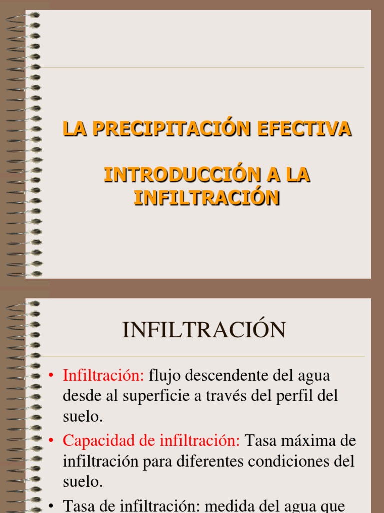 infiltración para diferentes condiciones del