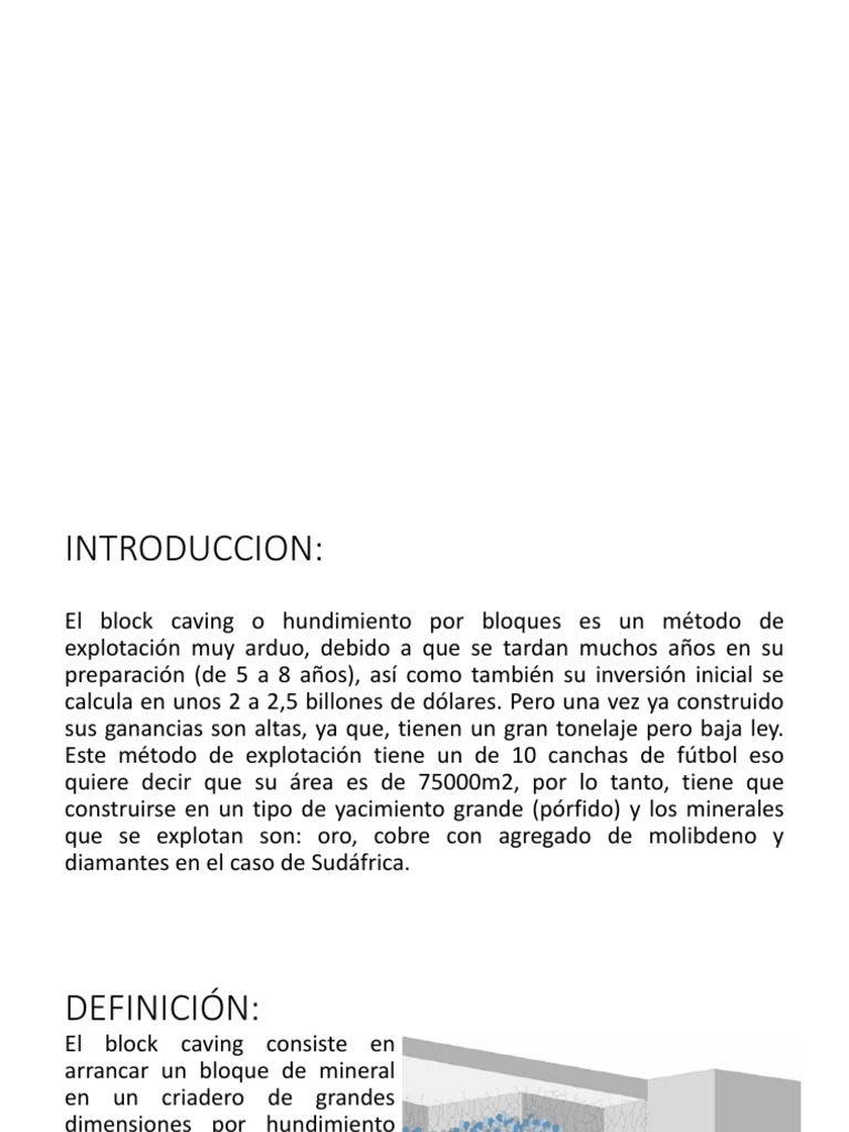 El block caving o hundimiento por bloques es un método de