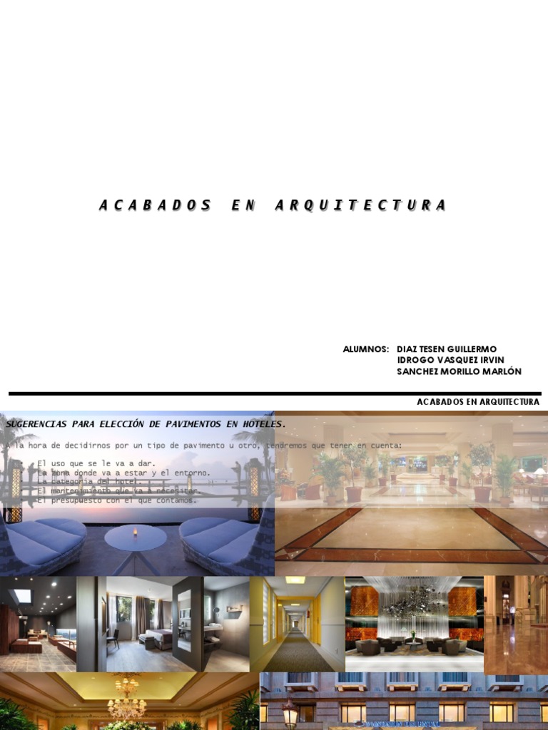 SUGERENCIAS PARA ELECCIÓN DE PAVIMENTOS EN HOTELES.