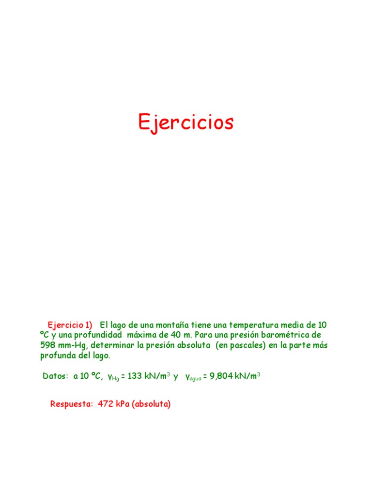 Datos: a 10 ºC, γHg = 133 kN/m3 y γagua = 9,804 kN/m3