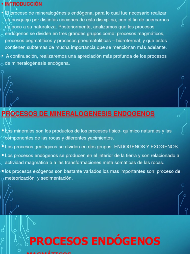 PROCESOS DE MINERALOGENESIS ENDOGENOS