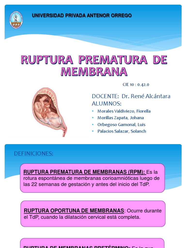 RUPTURA PREMATURA DE MEMBRANAS (RPM): Es la