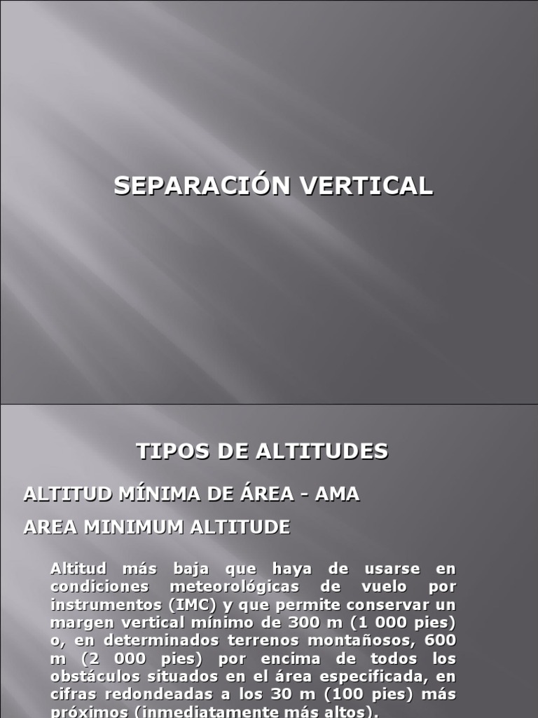 vertical mínimo de 300 m (1 000 pies), sobre todos