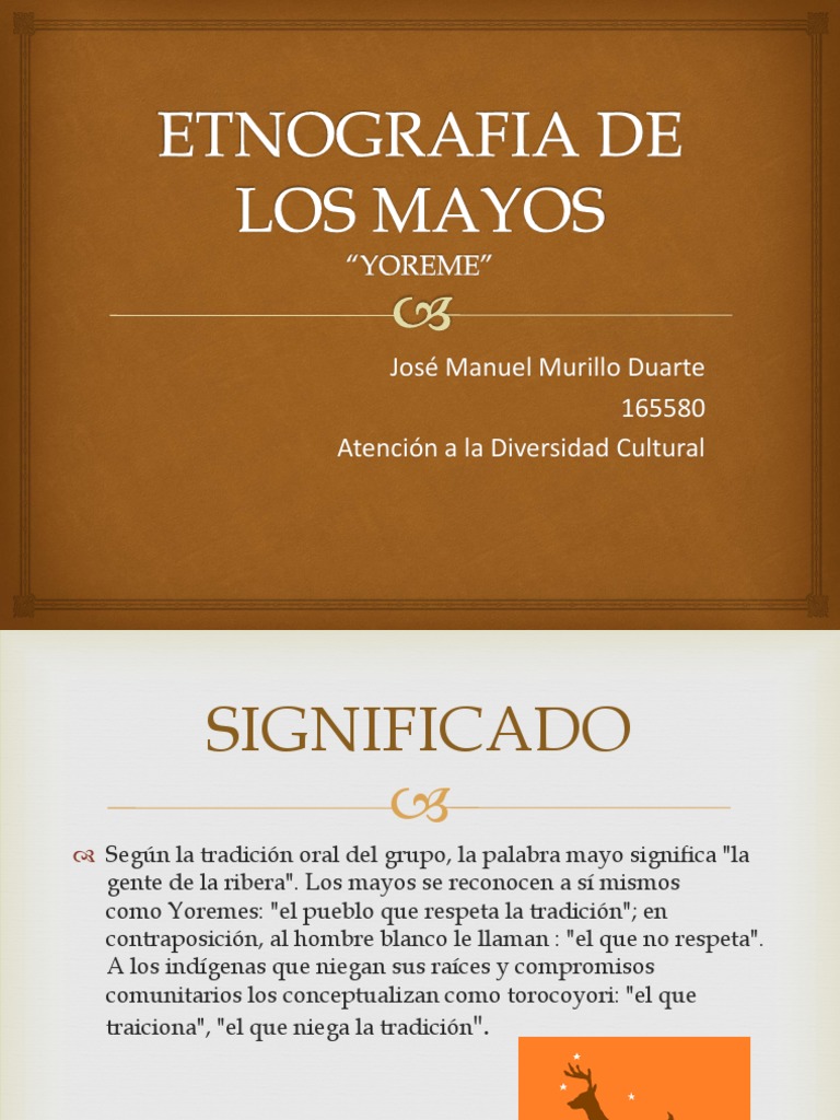 Según la tradición oral del grupo, la palabra mayo significa "la