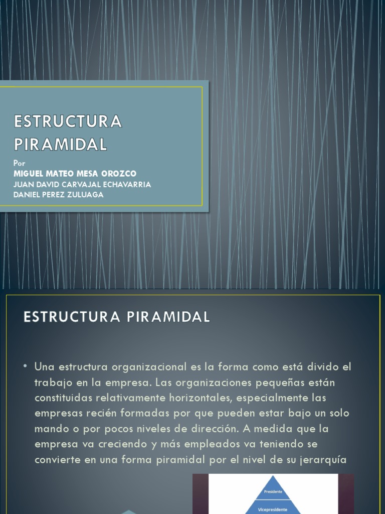 • Hay tres tipos principales de estructuras de organización piramidal: