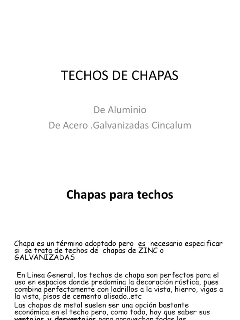 chapas galvanizadas o aluminizadas, los costos se reducen de acuerdo a los