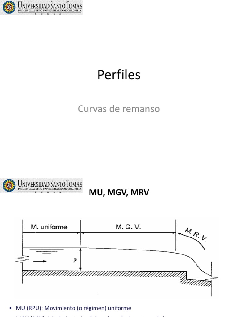 • Curvas de remanso con pendiente de la solera suave o moderada. Perfiles de tipo