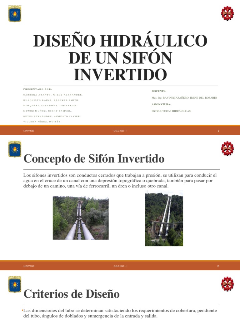Los sifones invertidos son conductos cerrados que trabajan a presión, se utilizan para conducir el