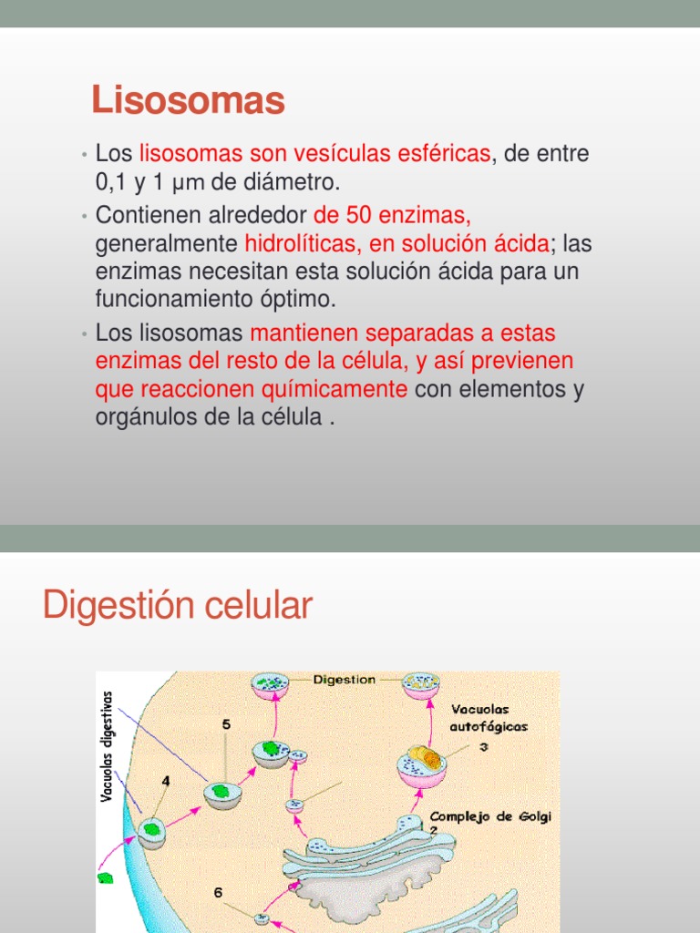 • Los lisosomas son vesículas esféricas, de entre