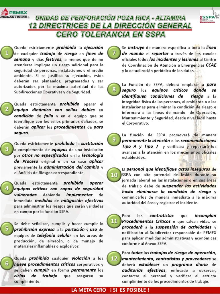 Se debe señalizar, cumplir y hacer cumplir la 11 Procedimientos Críticos o que salvan vidas, se