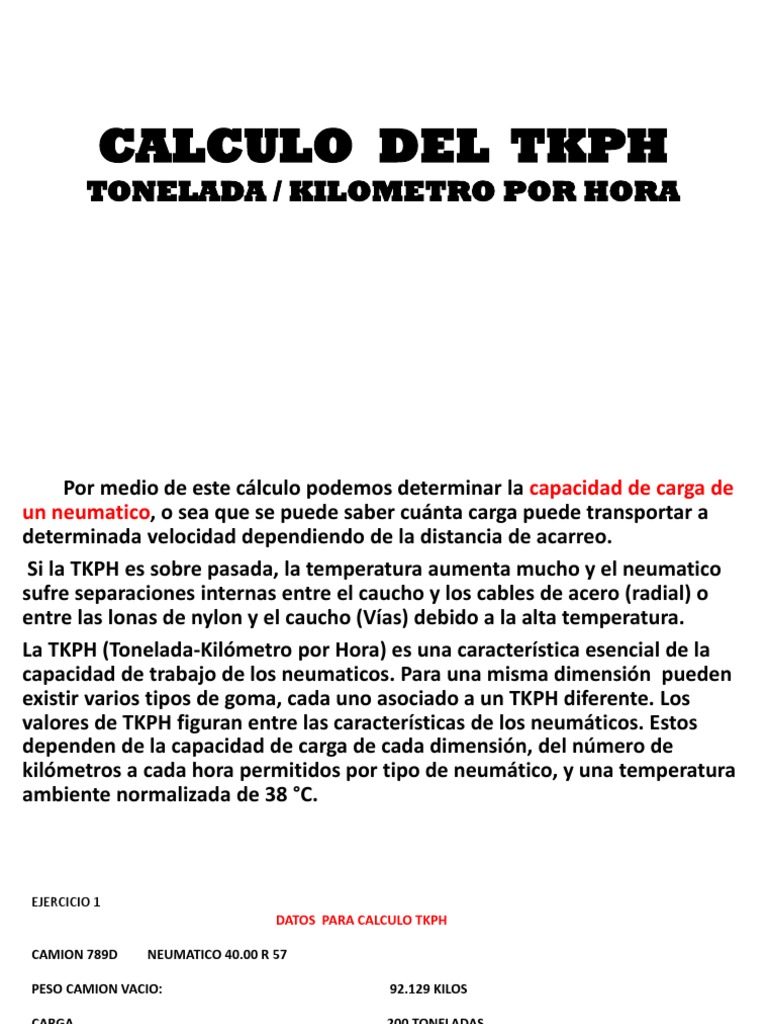 toneladas kilometros por hora explotacion de base = peso promedio por neumatico x velocidad media