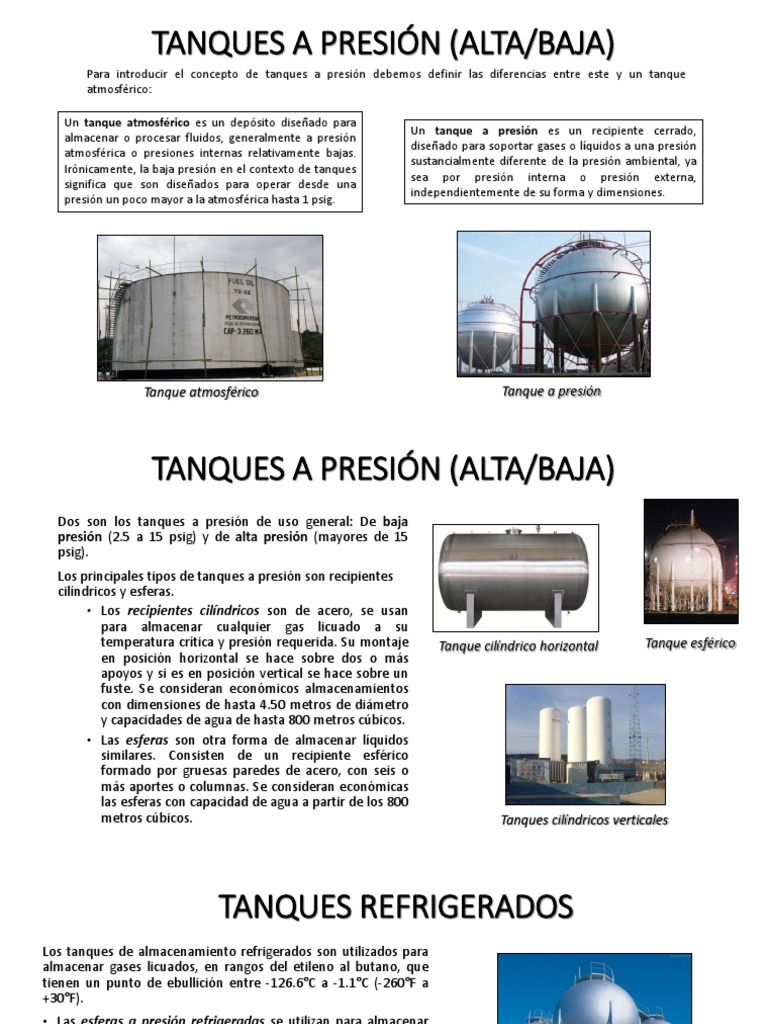 Los principales tipos de tanques a presión son recipientes