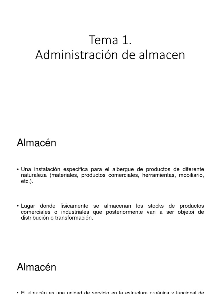 • El almacén es una unidad de servicio en la estructura orgánica y funcional de