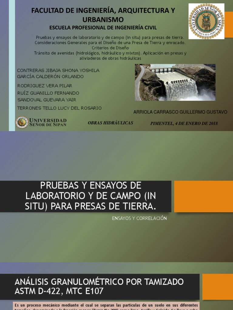 Pruebas y ensayos de laboratorio y de campo (in situ) para presas de tierra.