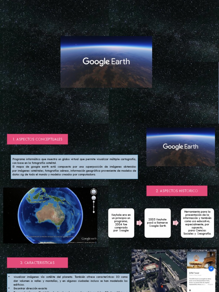 1. Google Earth es un programa que muestra un globo virtual permitiendo visualizar múltiple cartografía, con base en