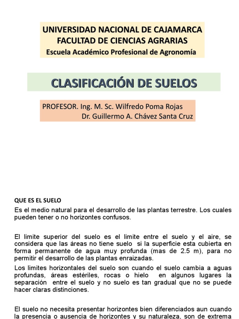 importancia para la clasificación del suelo.