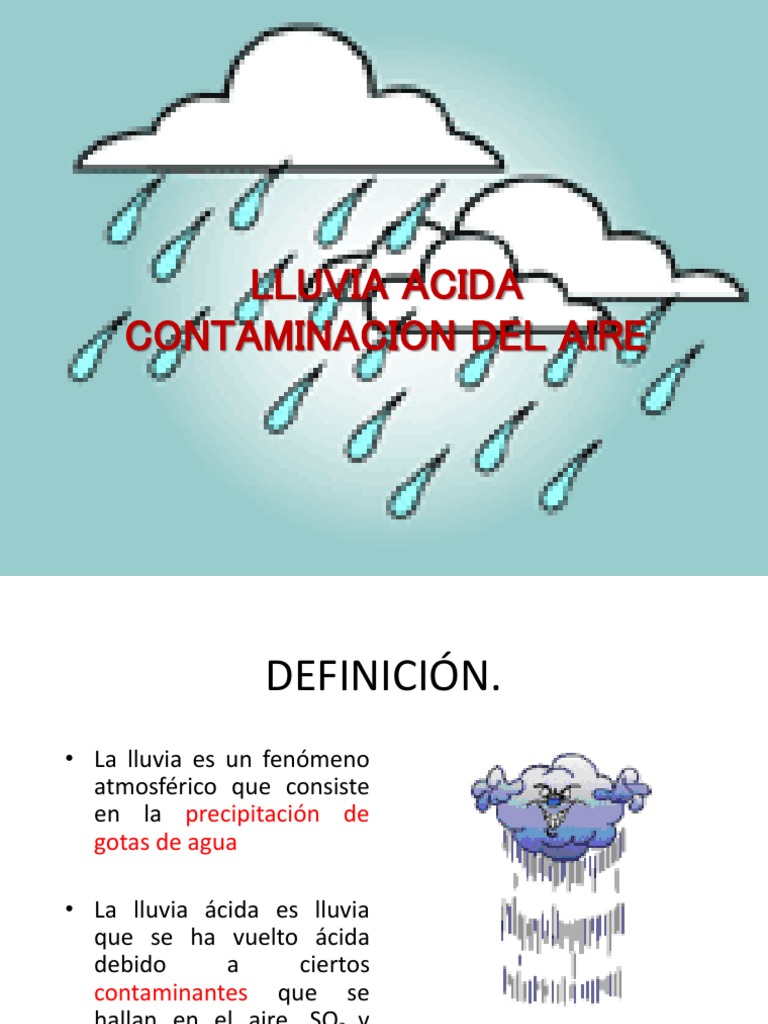 • La lluvia ácida, Rx de: gases + agua + oxígeno + sustancias químicas