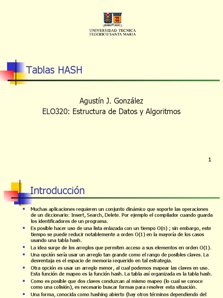 Suposición de hashing uniforme: es cuando cualquier elemento es igualmente
