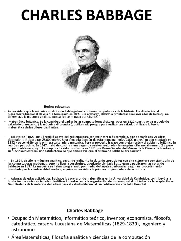 • Matemático británico. Se le considera el padre de las computadores digitales, pues en 1822 construyó un modelo de