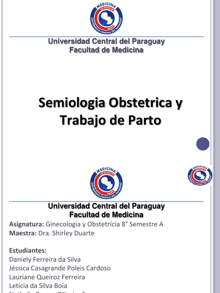 Asignatura: Ginecologia y Obstetrícia 8° Semestre A