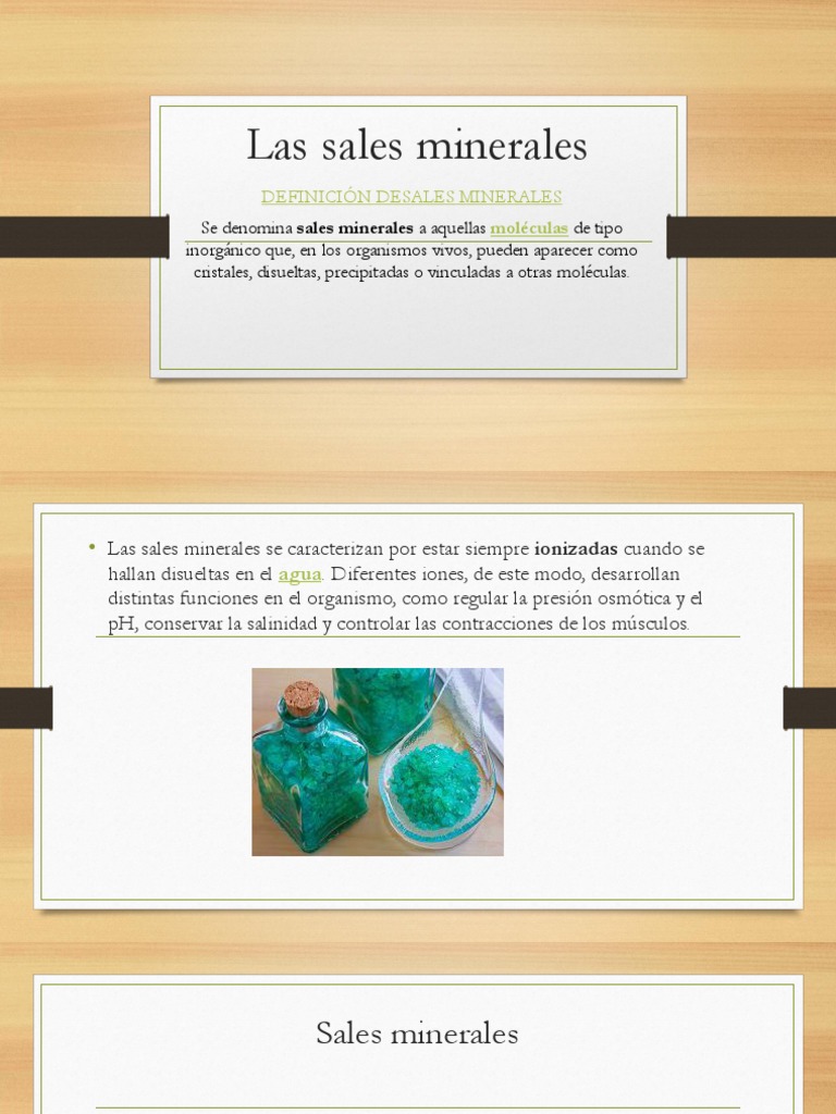 Se denomina sales minerales a aquellas moléculas de tipo