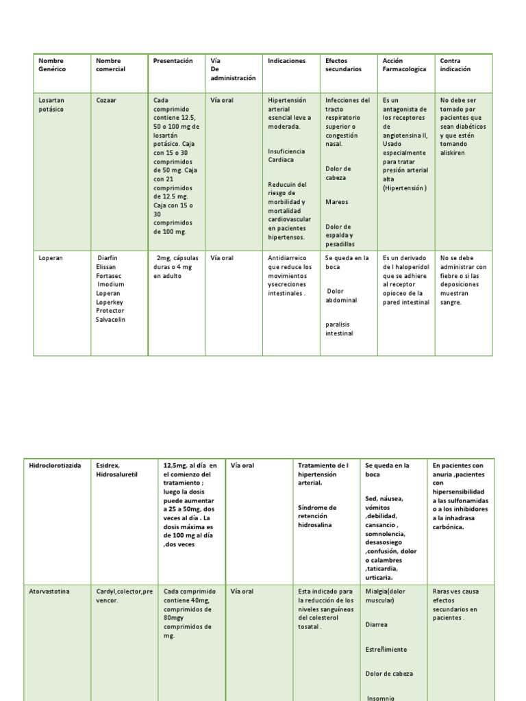 Hidroclorotiazida Esidrex, 12,5mg, al día en Vía oral Tratamiento de l Se queda en la En pacientes con