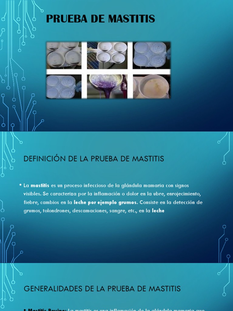 fiebre, cambios en la leche por ejemplo grumos. Consiste en la detección de