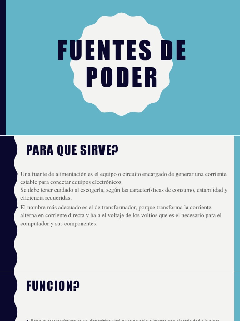 • En pocas palabras, el funcionamiento de una fuente de poder es el de un pequeño