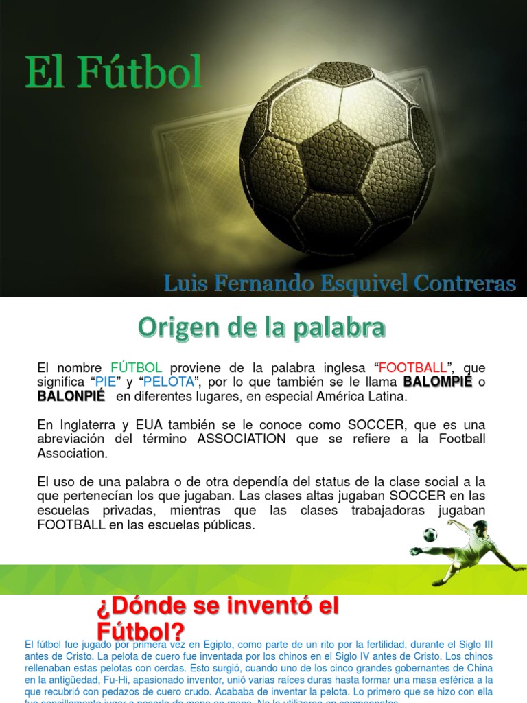 El nombre FÚTBOL proviene de la palabra inglesa “FOOTBALL”, que