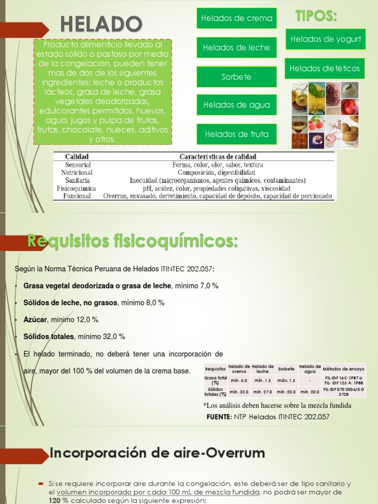 Según la Norma Técnica Peruana de Helados ITINTEC 202.057: