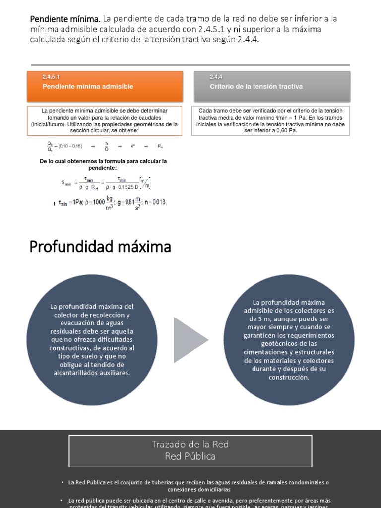 La pendiente mínima admisible se debe determinar Cada tramo debe ser verificado por el criterio de la tensión