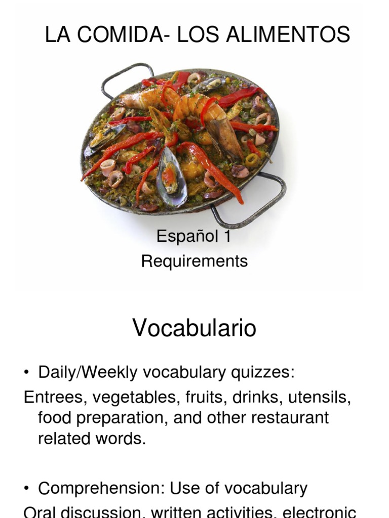 day all work is due. Present electronically via PowerPoint the Spanish recipe and the English recipe so that