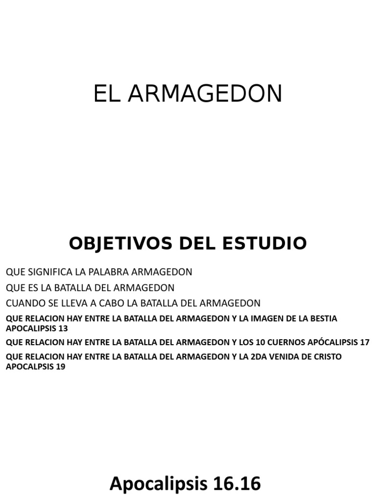 • 1. Que será la última gran batalla de la historia de esta tierra y que aún está en el futuro.