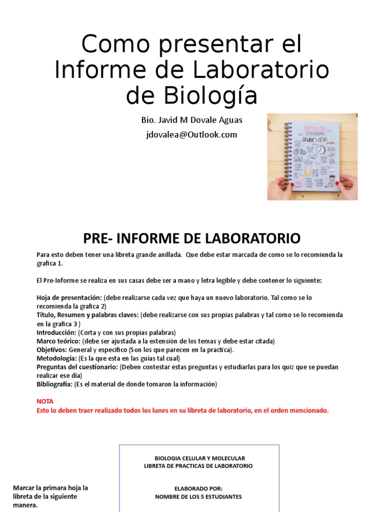 El Pre-Informe se realiza en sus casas debe ser a mano y letra legible y debe contener lo siguiente: