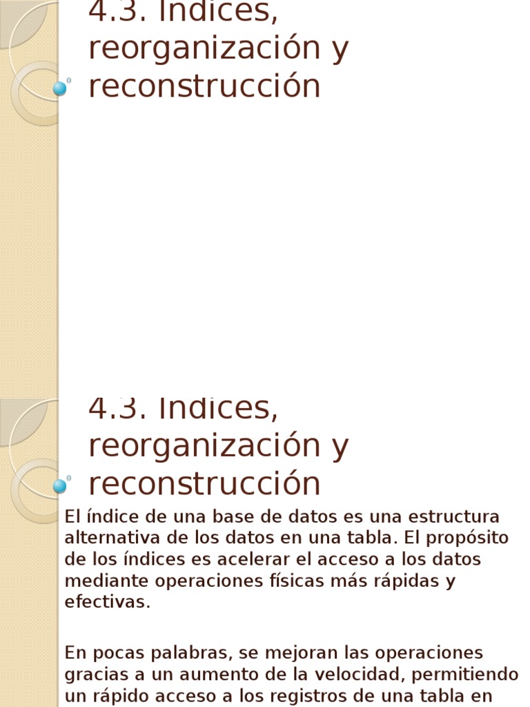 reorganización de un índice siempre se