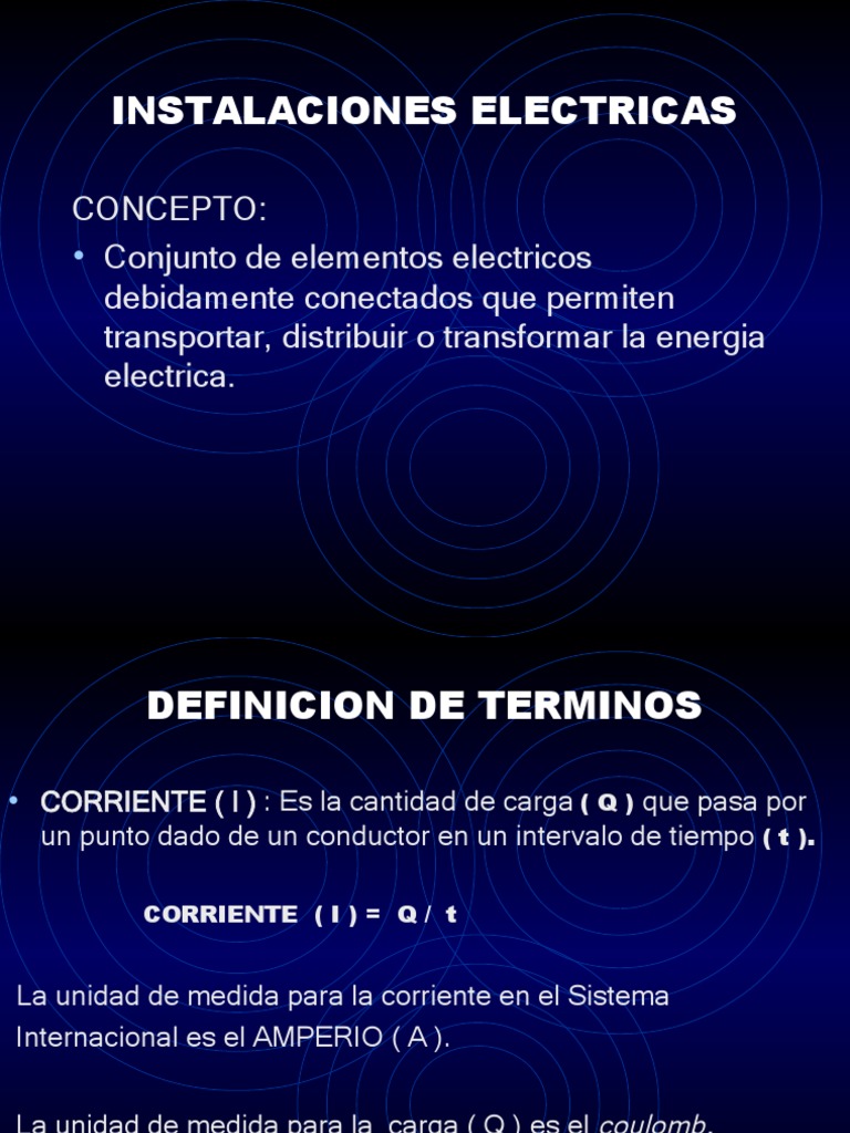 • CORRIENTE ( I ) : Es la cantidad de carga ( Q ) que pasa por