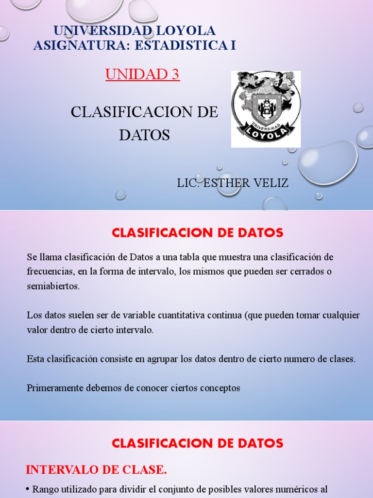 Esta clasificación consiste en agrupar los datos dentro de cierto numero de clases.