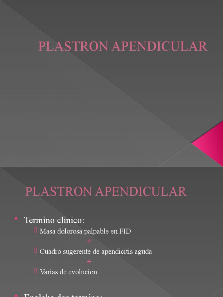 Plastrón apendicular. Experiencia de 5 añosDres. P. Claure, V. Linacre, J. Lagos, M. Guelfand, P. López, P. Gutiérrez, A. Zavala.Hospital Exequiel Gonzales