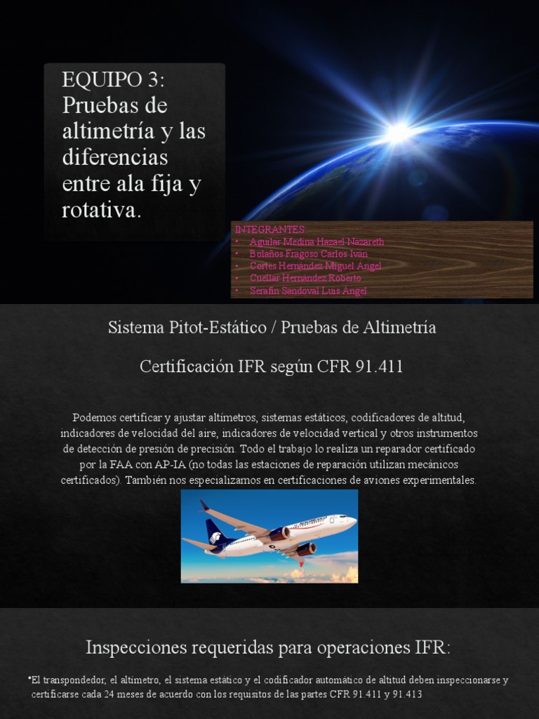 aeronaves y sistemas estáticos o pruebas a bordo de altímetros e indicadores de velocidad del