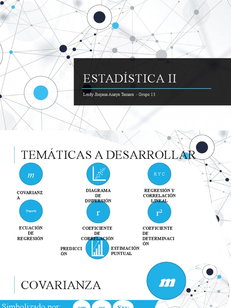 o Si la covarianza es positiva, indica una pendiente positiva, por ejemplo en el caso de una recta,