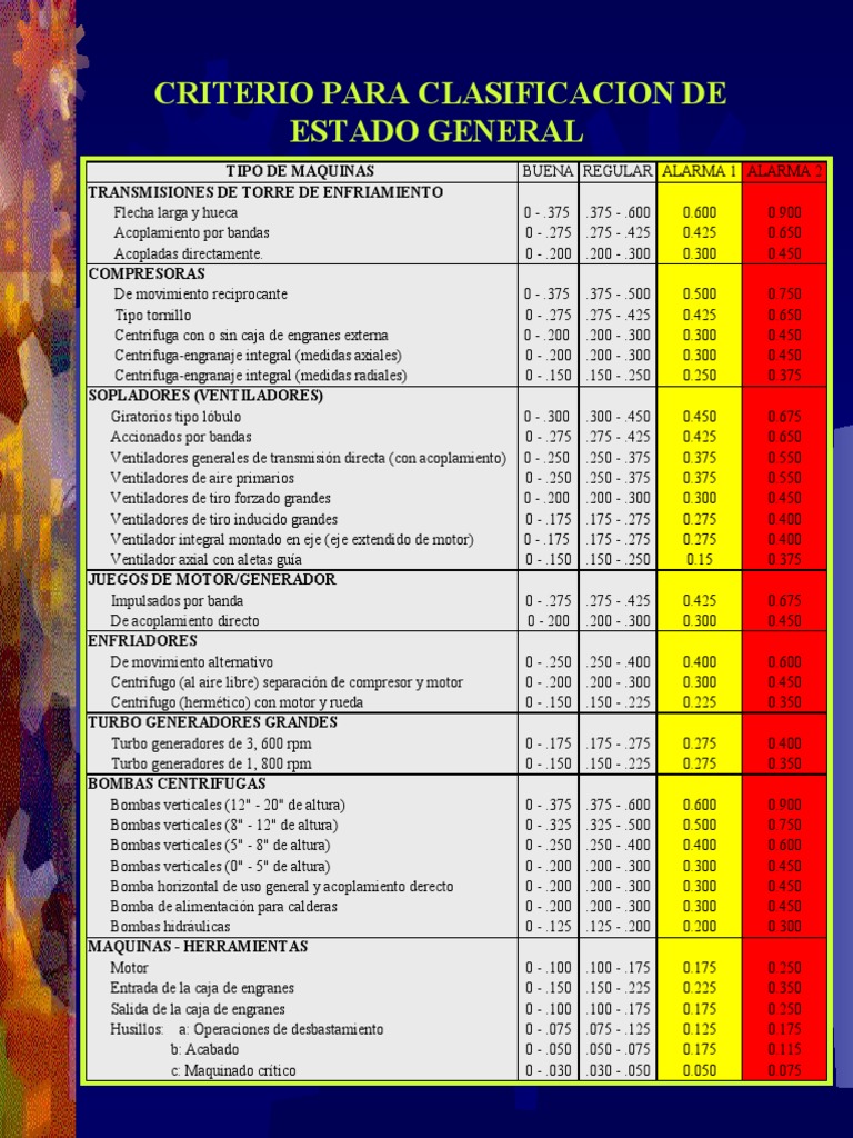 TIPO DE MAQUINAS BUENA REGULAR ALARMA 1 ALARMA 2