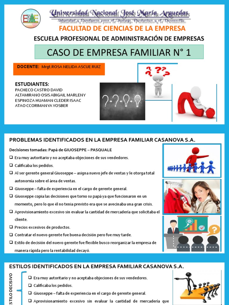 PROBLEMAS IDENTIFICADOS EN LA EMPRESA FAMILIAR CASANOVA S.A.