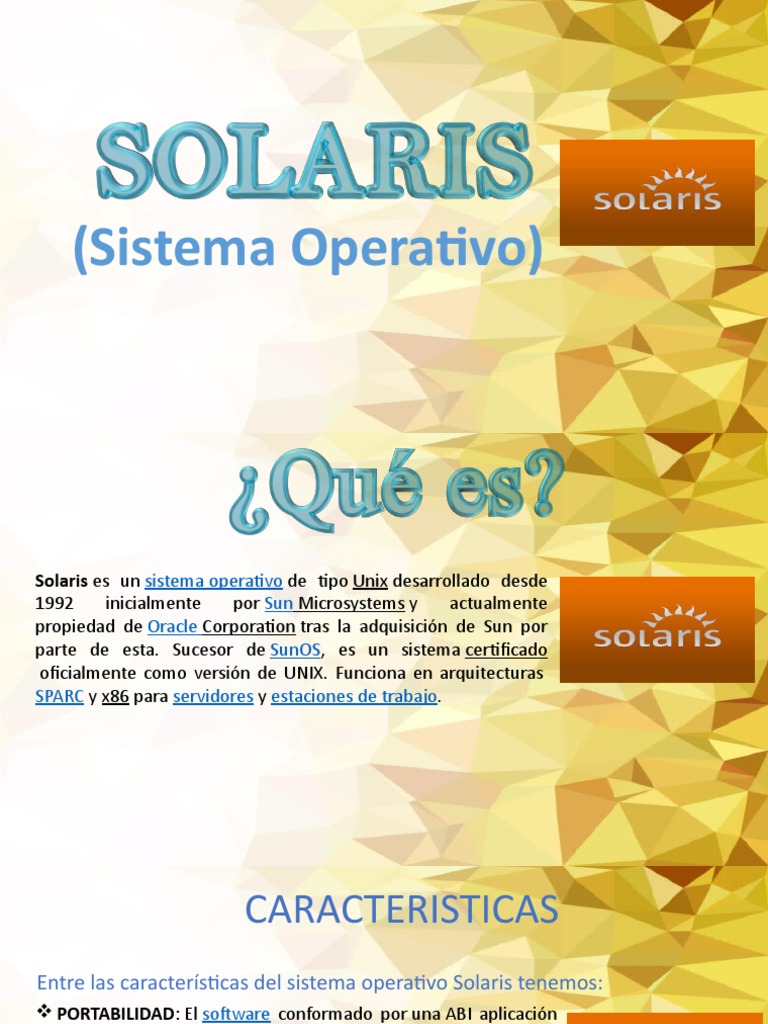 Solaris es un sistema operativo de tipo Unix desarrollado desde