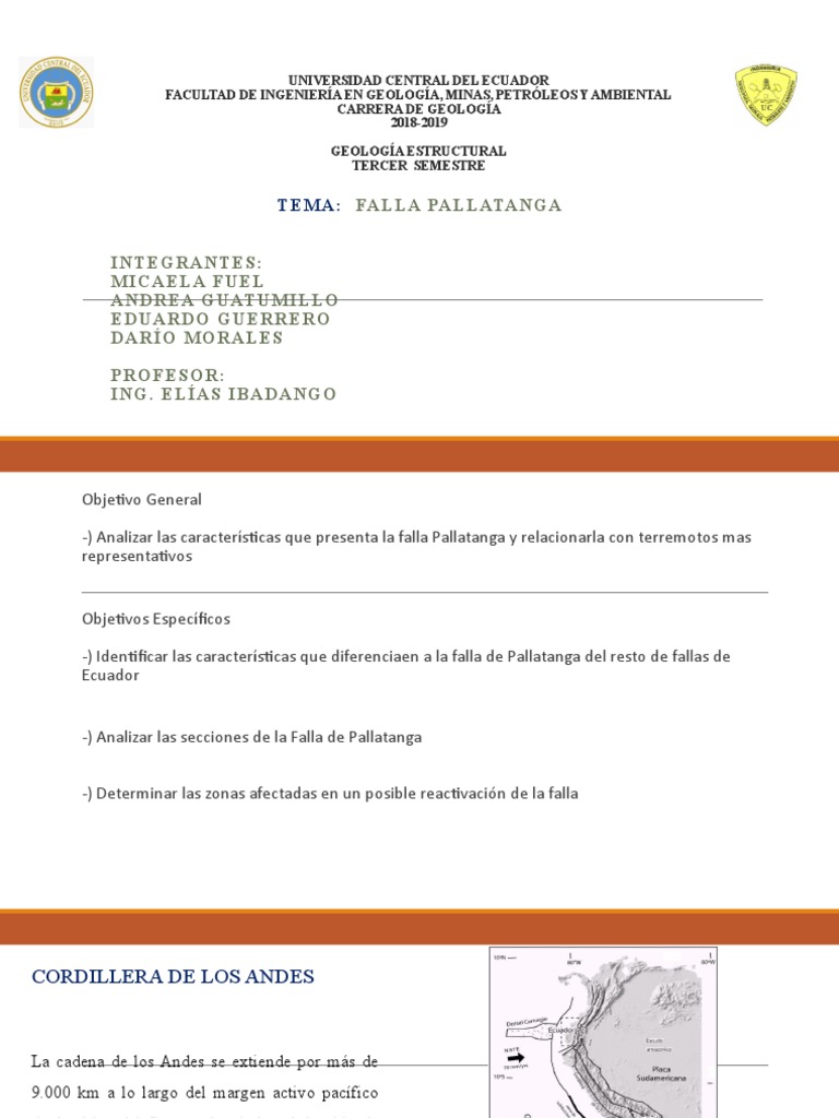 -) Analizar las características que presenta la falla Pallatanga y relacionarla con terremotos mas