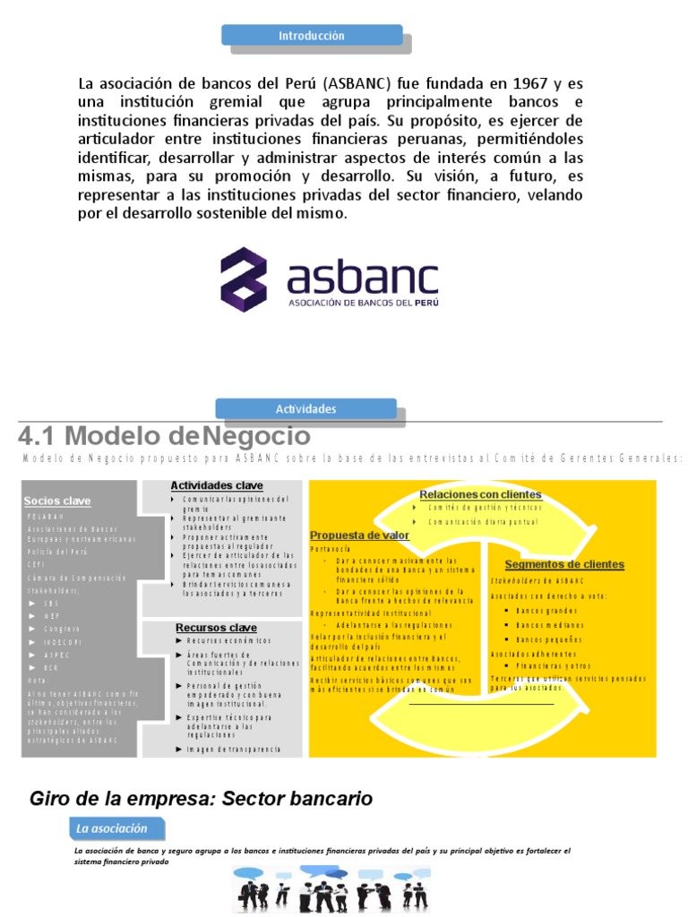 M o d e lo d e N e g o c io p r o p u e s t o p a r a A S B A N C s o b r e la b a s e d e la s e n t r e v is t a s a l C o m it é d e G e r e n t e s G e n e r a le s :