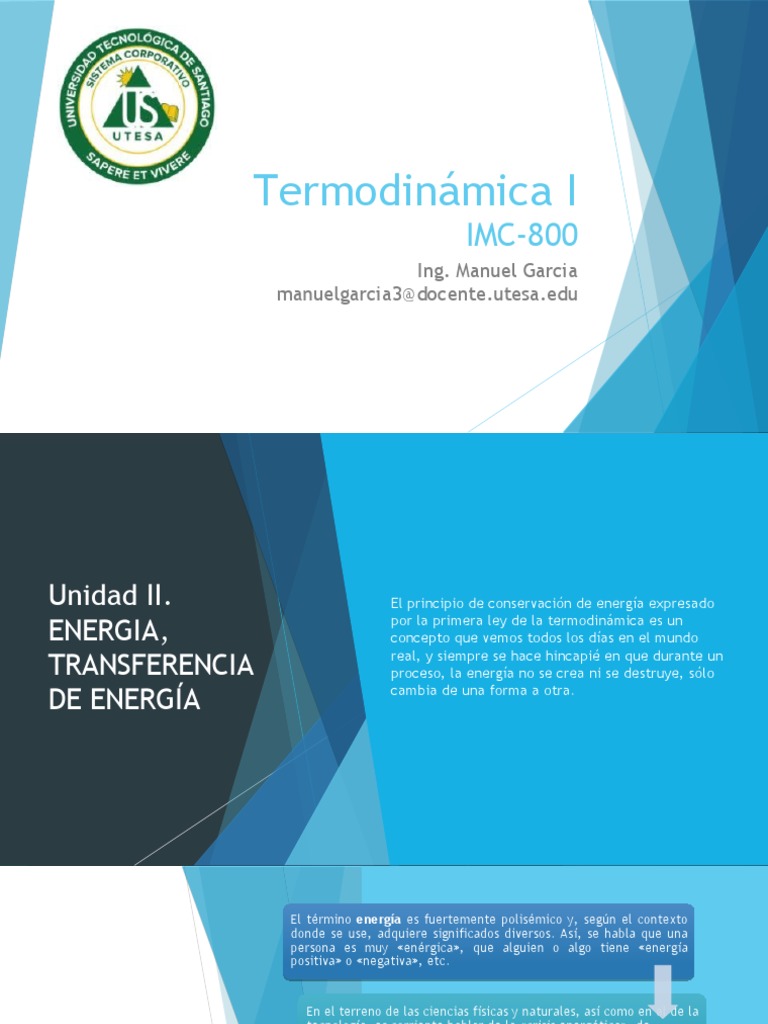 Unidad II. El principio de conservación de energía expresado
