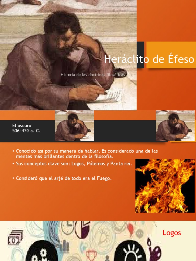 • Sus conceptos clave son: Logos, Pólemos y Panta rei.