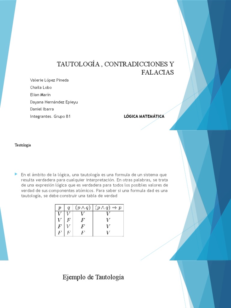 TAUTOLOGÍA , CONTRADICCIONES Y